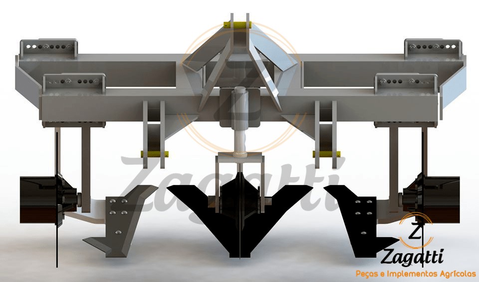 AFOFADOR DE MANDIOCA 2 LINHAS é indicado para o arranquio de mandioca de mesa, com espaçamento entre linhas de 80 centimetros a 1 metro. Corta horizontalmente o solo sobre as mandiocas, com profundidade que pode ser regulada de 20 cm a 40 cm.